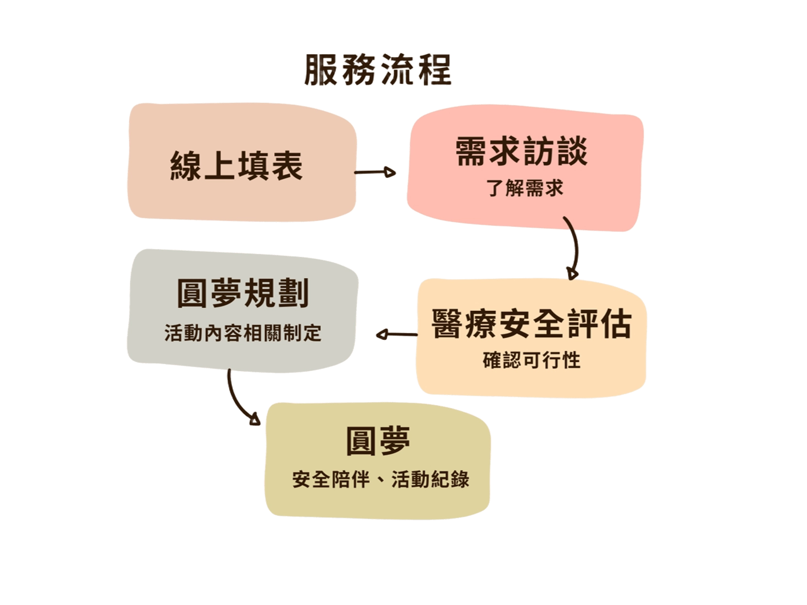 協會將協助評估風險、規劃動線、連結醫護、安排交通、記錄影像,讓圓夢安全、有愛、被看見。